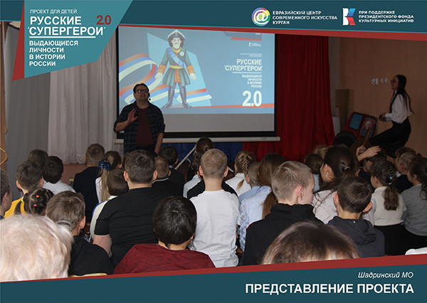 Команда проекта «Русские супергерои. Выдающиеся личности в истории России 2.0» посетила село Ключи Шадринского муниципального округа. Для учащихся Ключевской средней общеобразовательной школы имени А. П. Бирюкова было организовано мультимедийное представление Евразийского центра современного искусства под названием «Русские супергерои 2.0».