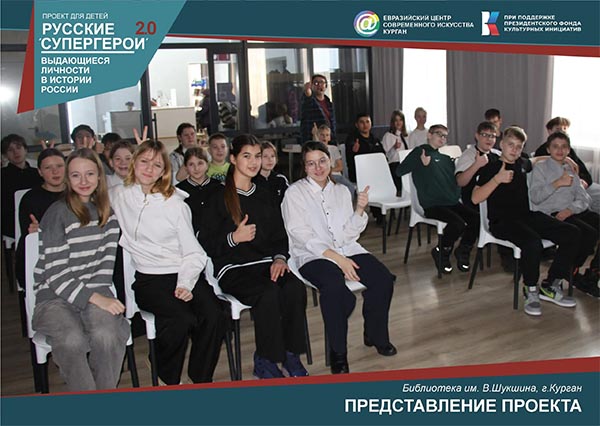 С 1 февраля 2026 году Центр планирует организовать 50 показов мультимедийного представления «Русские супергерои 2.0» для детей в библиотеках и учебных заведениях Курганской и Тюменской областей. Это интерактивный спектакль, рассказывающий о выдающихся личностях в российской истории. Вместе с актёром Николаем Бардиным и анимационным героем Мультяшом юные зрители познакомятся с такими знаменитыми личностями, как Илья Муромец, Афанасий Никитин, Пётр Первый, Михаил Ломоносов и другие. Представление поможет детям узнать о лучших человеческих качествах, которые делают человека настоящим героем. Мероприятие проводится бесплатно благодаря поддержке Президентского фонда культурных инициатив. На одно представление может прийти от 25 до 200 зрителей. Продолжительность спектакля составляет 40 минут, а в день можно организовать не более двух показов. Центр предоставляет всё необходимое оборудование для проведения мероприятия. Заявки могут подавать учреждения из любых населённых пунктов Курганской области, независимо от их удалённости от Кургана.